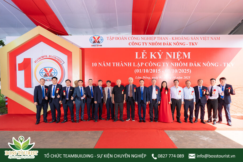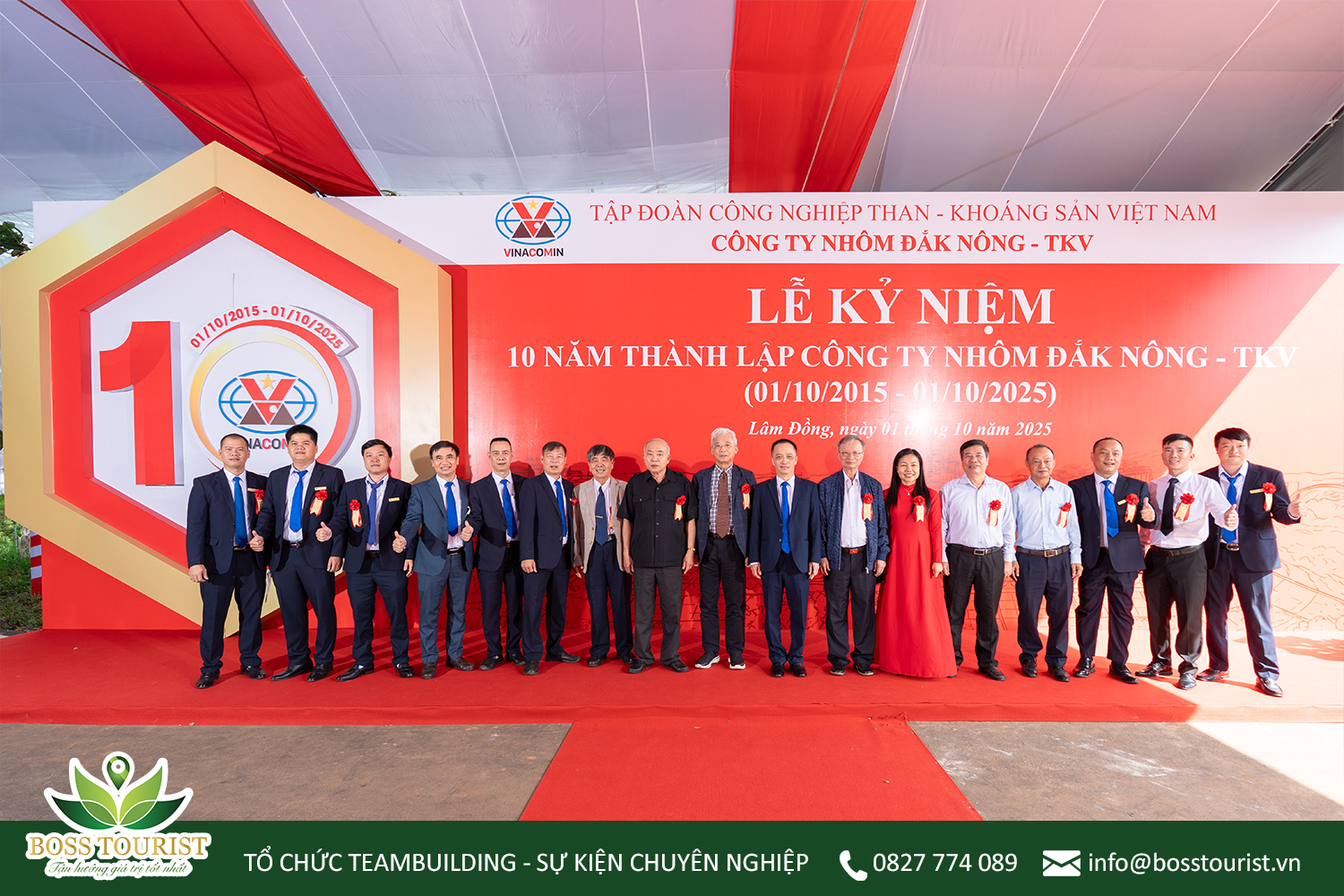 Boss Tourist đã vinh dự là đối tác tổ chức lễ kỷ niệm 10 năm thành lập Công ty Nhôm Đắk Nông – TKV (01/10/2015 – 01/10/2025). Sự kiện diễn ra tại khuôn viên của công ty, đánh dấu cột mốc quan trọng trong hành trình phát triển của doanh nghiệp ngành công nghiệp nhôm hàng đầu Việt Nam.