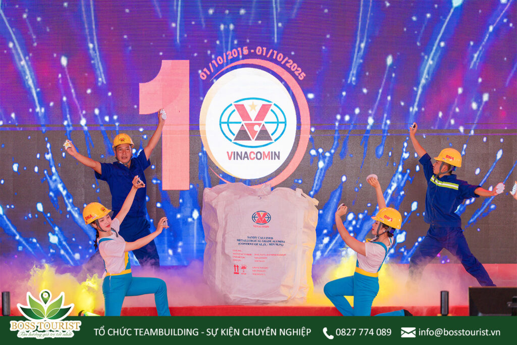 Boss Tourist đã xây dựng kịch bản chương trình chi tiết, từ nghi lễ khai mạc, phát biểu của lãnh đạo, đến các tiết mục văn nghệ và trình chiếu phóng sự 10 năm phát triển. Đặc biệt, khu vực triển lãm trưng bày hình ảnh và các sáng kiến kỹ thuật nổi bật được thiết kế tinh tế, góp phần tôn vinh thành tựu của Công ty Nhôm Đắk Nông – TKV.