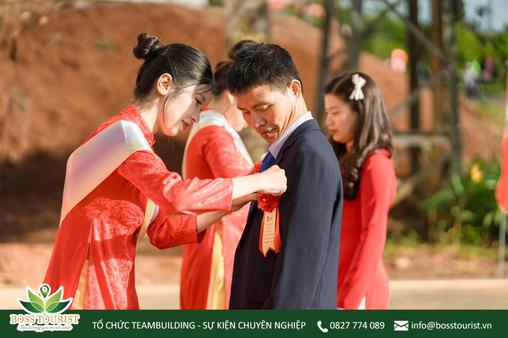 - Lễ đón tiếp đại biểu: Đội ngũ lễ tân chuyên nghiệp của Boss Tourist đã đảm bảo khâu đón tiếp diễn ra chu đáo, từ hướng dẫn chỗ ngồi đến cung cấp tài liệu sự kiện.