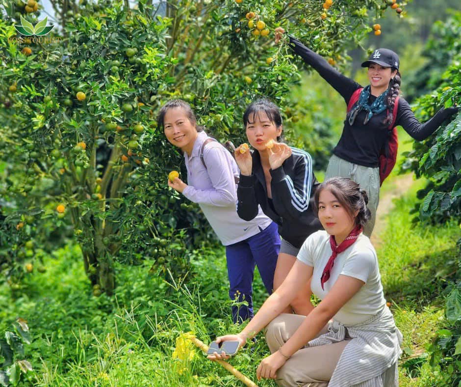 trên đường đi ghé tham quan các vườn trái cây: vườn cam, vườn